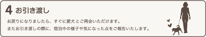 いつもと違う環境に緊張しやすい子や、物音に敏感な子も落ち着いてお泊りいただくことができるよう、少数制ペットホテルのサービスをご提供しております。